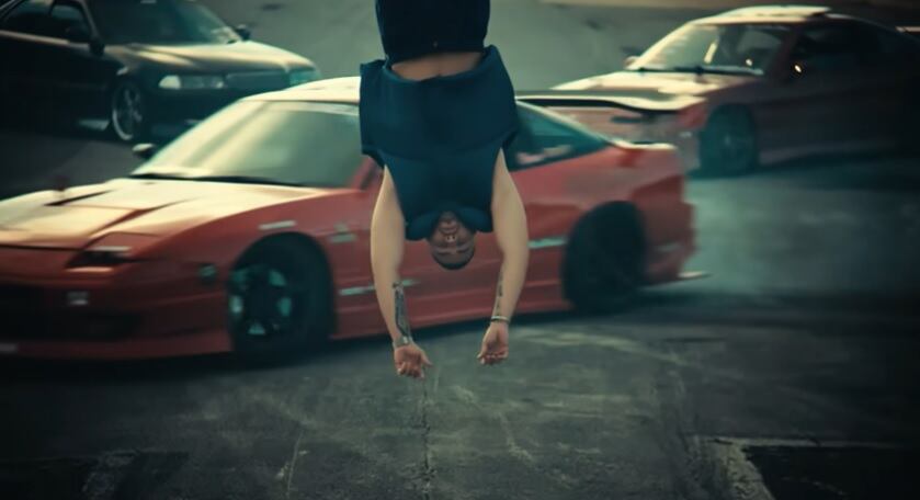 Y es que en los segundos iniciales introduce una vieja cinta de VHS en la que se refleja él cuando pequeño cantando un tema. Luego aparece sobre un vehículo que maneja a toda velocidad mientras es acompañado de una mujer.