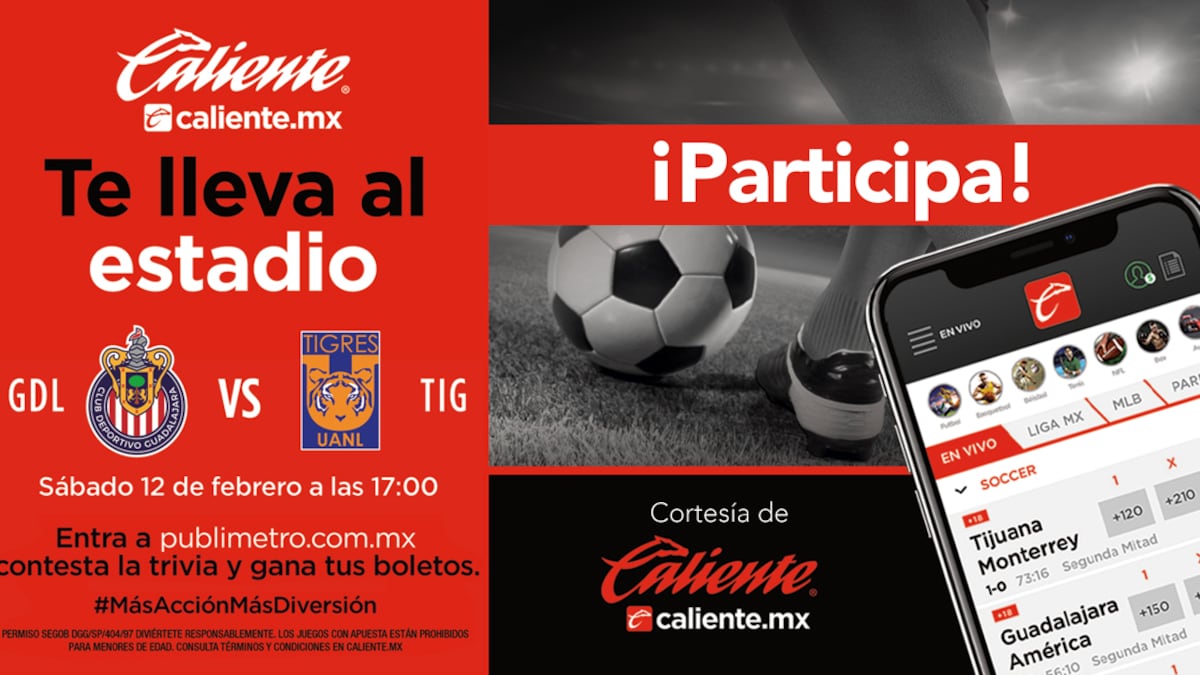 Si eres de las primeras personas en contestar correctamente las siguientes preguntas y mandas tus respuestas junto con tus datos completos (nombre, sección favorita de Publimetro y edad) a gana@publimetro.com.mx, podrás ganar un pase doble para el partido Guadalajara vs Tigres.