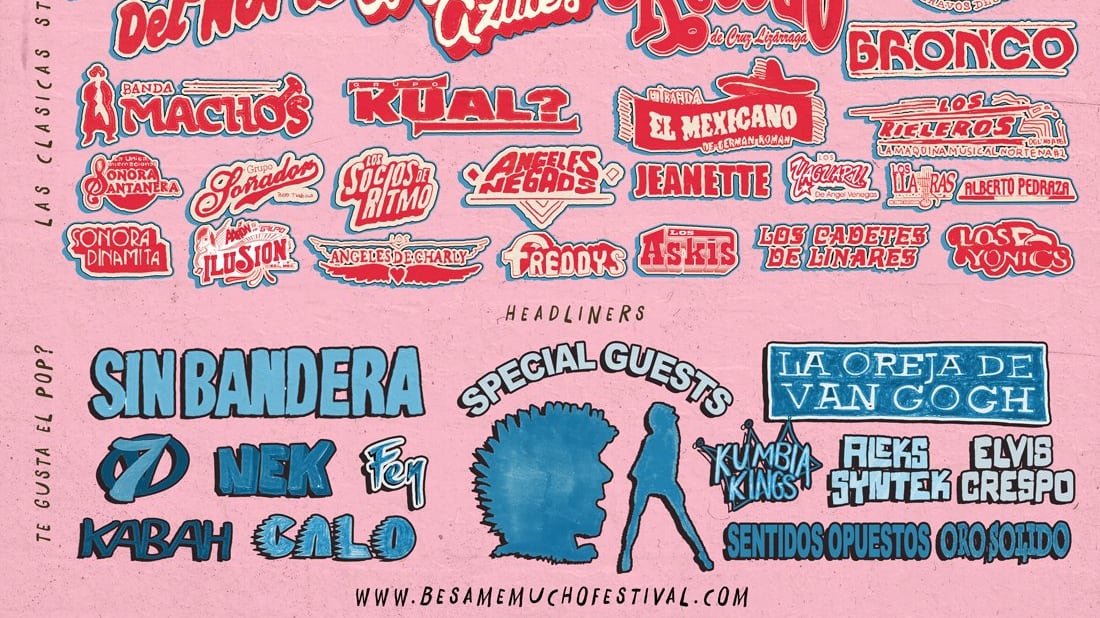 El día de ayer por medio de las redes sociales se dio a conocer el cartel del festival “Bésame Mucho” que se llevará a cabo el sábado 3 de diciembre de este año en el Dodger Stadium, en California, Estados Unidos. Cabe decir que este festival reúne a las bandas más populares de México de diversos géneros musicales. Conforme con el cartel del evento este estará dividido en tres secciones diferentes, pues habrá de todo. Para empezar está la zona de “Rock” en la cual tocarán bandas como: Caifanes, Zoé, Molotov, El Tri, Panteón Rococo, Enanitos Verdes, Café Tacuba, Moenia, por mencionar algunos.