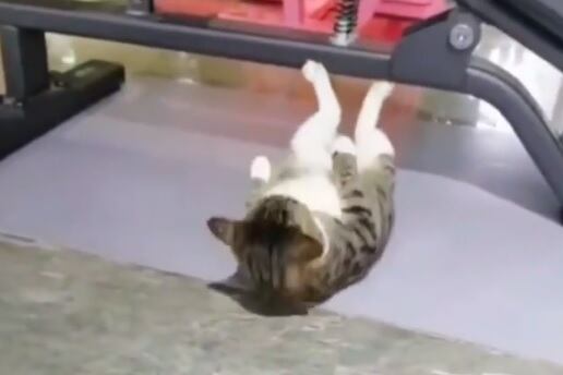Pero la sorpresa es que el michi se pone en posición, se voltea en el suelo para ponerse boca arriba y comienza a hacer la rutina. Todo esto mientras la voz hace el conteo ascendente hasta lograr los 19 abdominales.