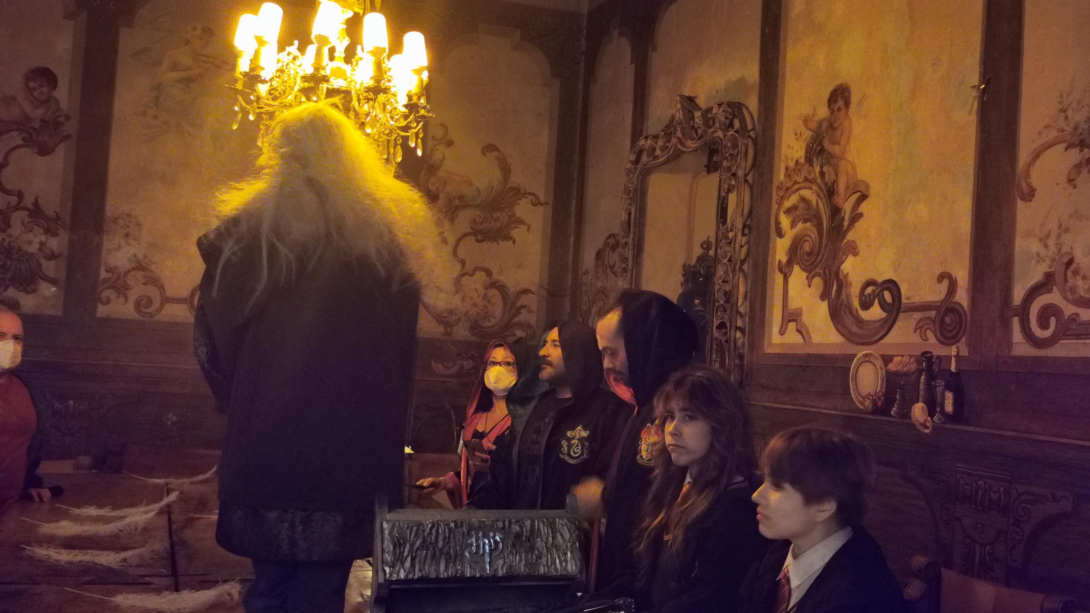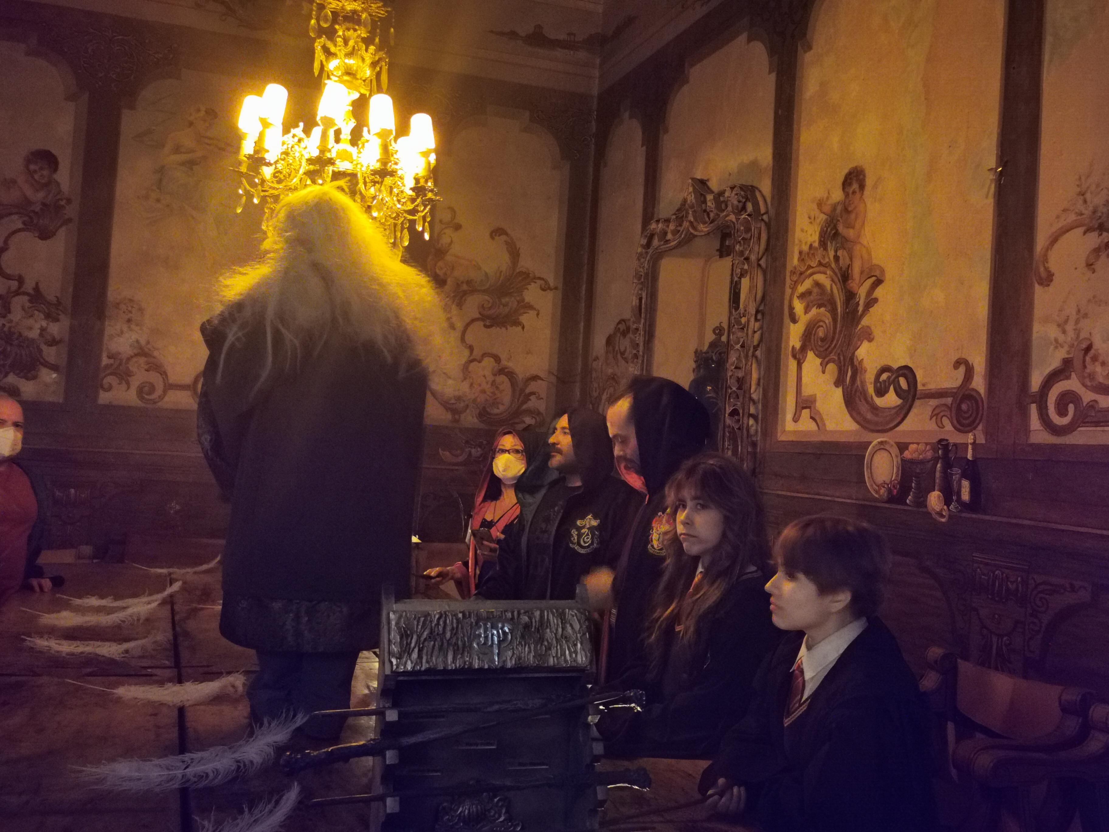 Desde que se ingresa al palacio, los visitantes se meten en el mundo de la magia y lo hechizos, ya que lo primero e colocarse la capara para emprender la aventura junto los personajes, como Harry Potter, Hermione Granger, Ron Weasley, Lord Voldemort, Albus Dumbledore, Rubeus Hagrid, Severus, entre otros.