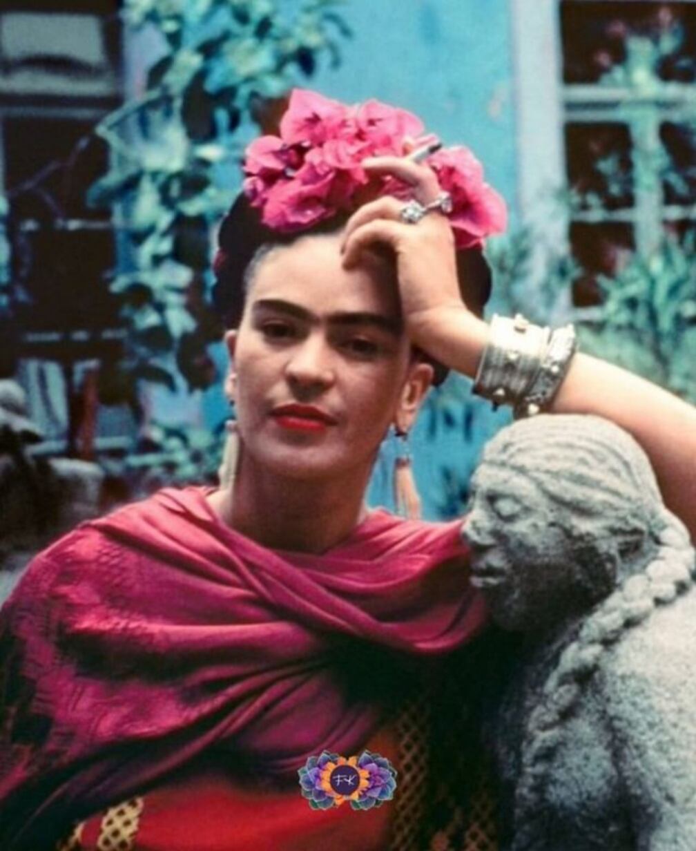 Magdalena Carmen Frida Kahlo; nació en 1907 y falleció en 1954. A los dieciocho años sufrió un accidente que la obligó a estar largo tiempo en cama, aprendió a pintar, creando un estilo de pintura absolutamente personal, ingenua y profundamente metafórica al mismo tiempo, en el lienzo plasmaba su exaltada sensibilidad acompañados de varios acontecimientos que marcaron su vida.