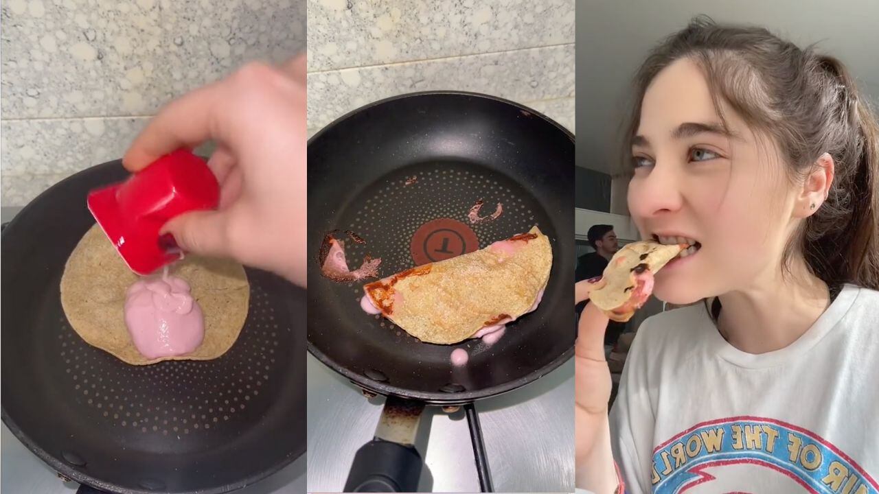Al conocer este dato, la influencer se cuestionó si podía hacer quesadillas con ese producto. Después de untarlo en una tortilla de maíz y calentarla en un sartén, la mujer quedó sorprendida con el resultado final: “Sí se hizo queso”, expresó la mujer antes de deleitar el resultado.