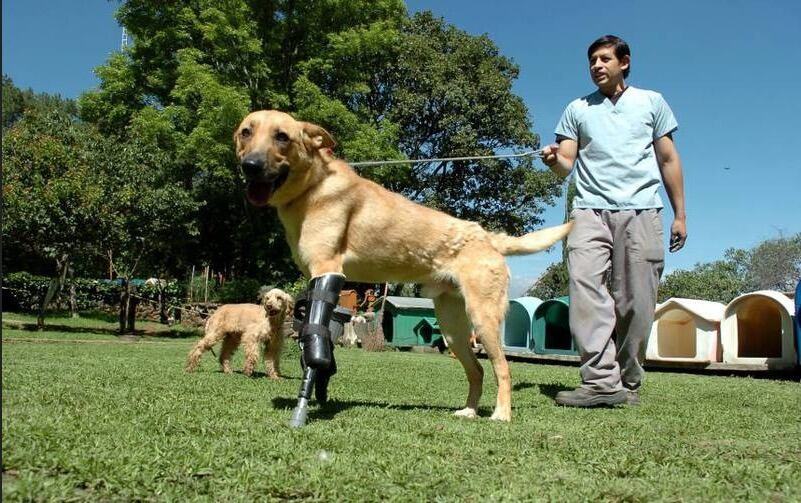 Después de ser rescatado por la Asociación Civil Milagros Caninos, ubicada en la capital del país, Pay de Limón pudo beneficiarse de unas prótesis fabricadas en Virginia, Estados Unidos.