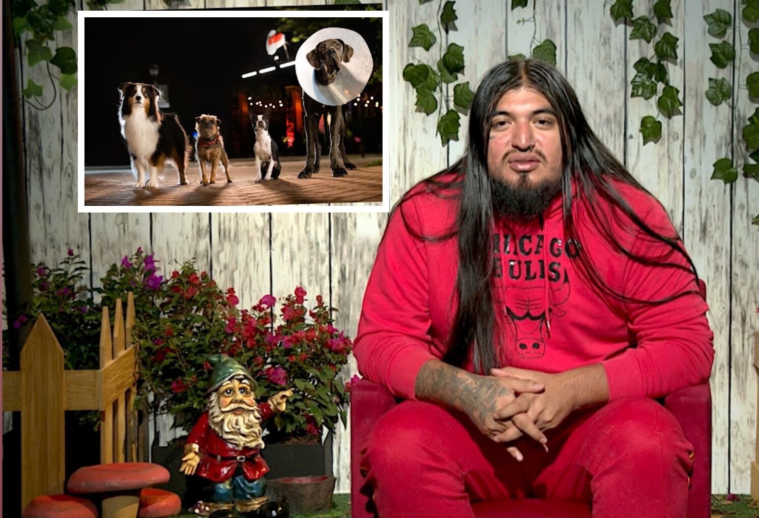 Mario Filio (Hunter): Gran Danés ansioso que trabaja como animal de apoyo emocional.