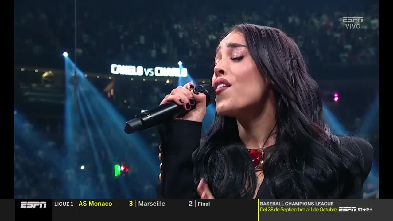 Danna Paola se luce entonando el Himno Nacional en pelea de Canelo Álvarez vs Jermell Charlo
