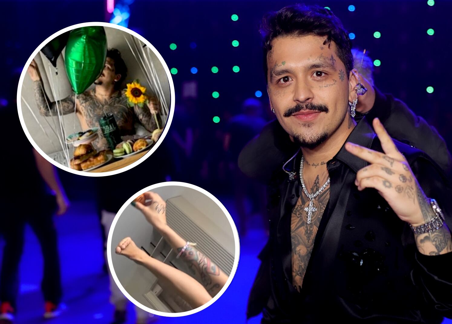 Nodal se mostró al desnudo rodeado de globos negros-verdes, una charola con varios tipos de pan y galletas del personaje de Eiichirō Oda de One Piece, su manga favorito.