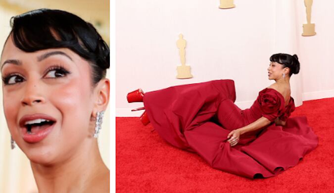 Óscar 2024: la aparatosa caída de Liza Koshy durante la alfombra roja