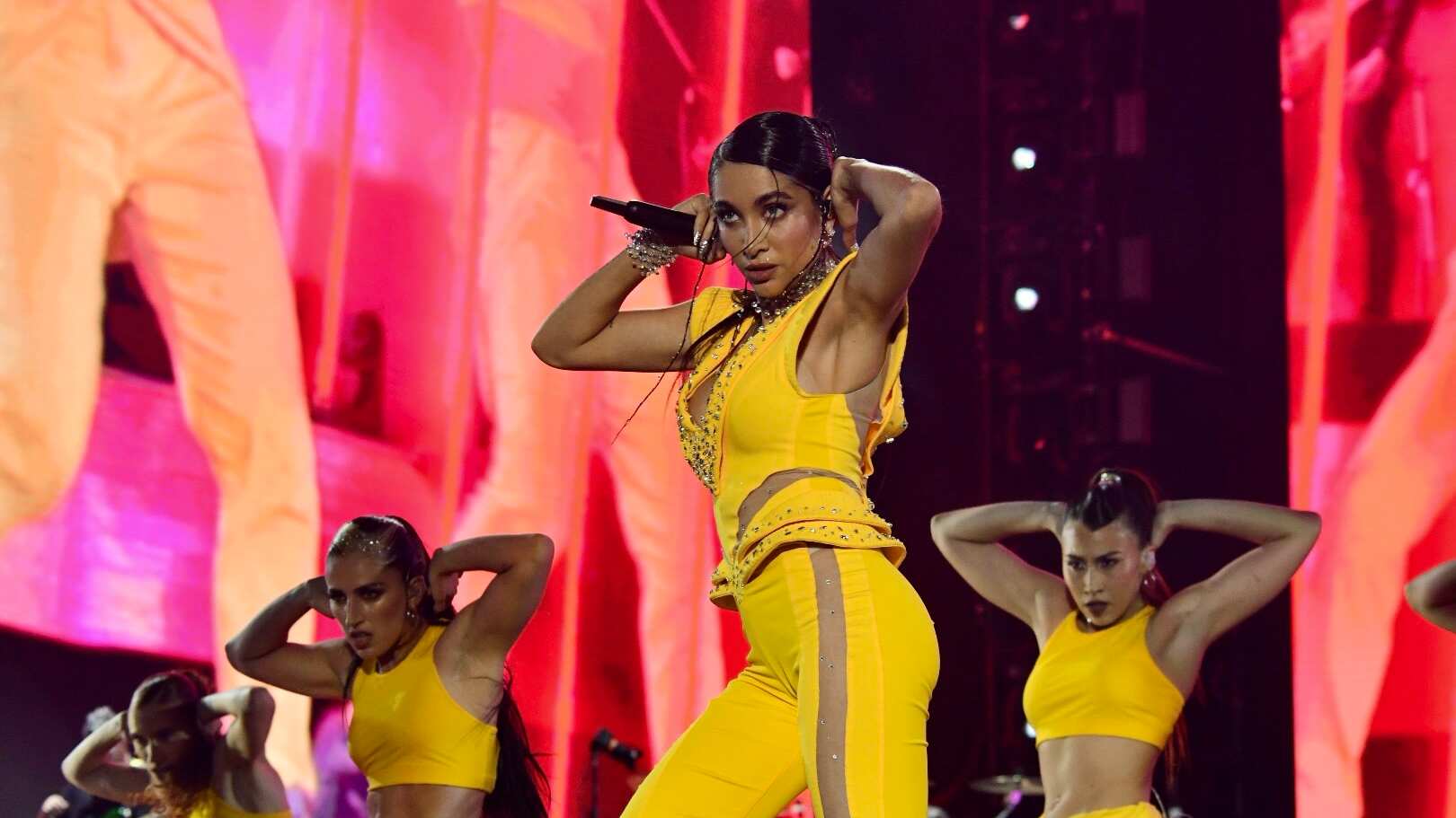 Los elementos de producción en la gigantesca tarima fueron clave para la teatralidad del espectáculo que siguió con “Wow Wow”.