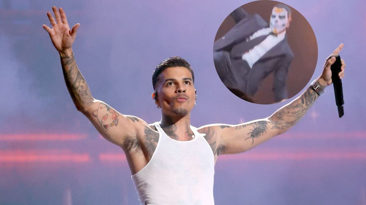 La cuenta de Instagram de ‘Sale el sol’ dio a conocer el video donde se observa al artista con un traje negro y la cara pintada (simulando un cráneo) que Rauw se cayó.