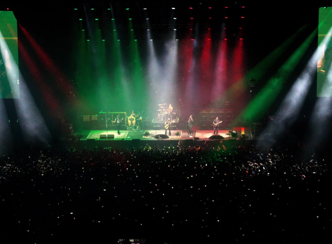 Ante miles de asistentes que abarrotaron el recinto, el cuarteto ofreció un espectáculo caracterizado por la potencia sonora y una producción técnica de alta fidelidad.