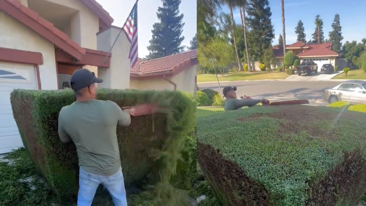 Jardinero en Estados Unidos (Captura de pantalla de video publicado en Instagram por carlos_scissor_hands)