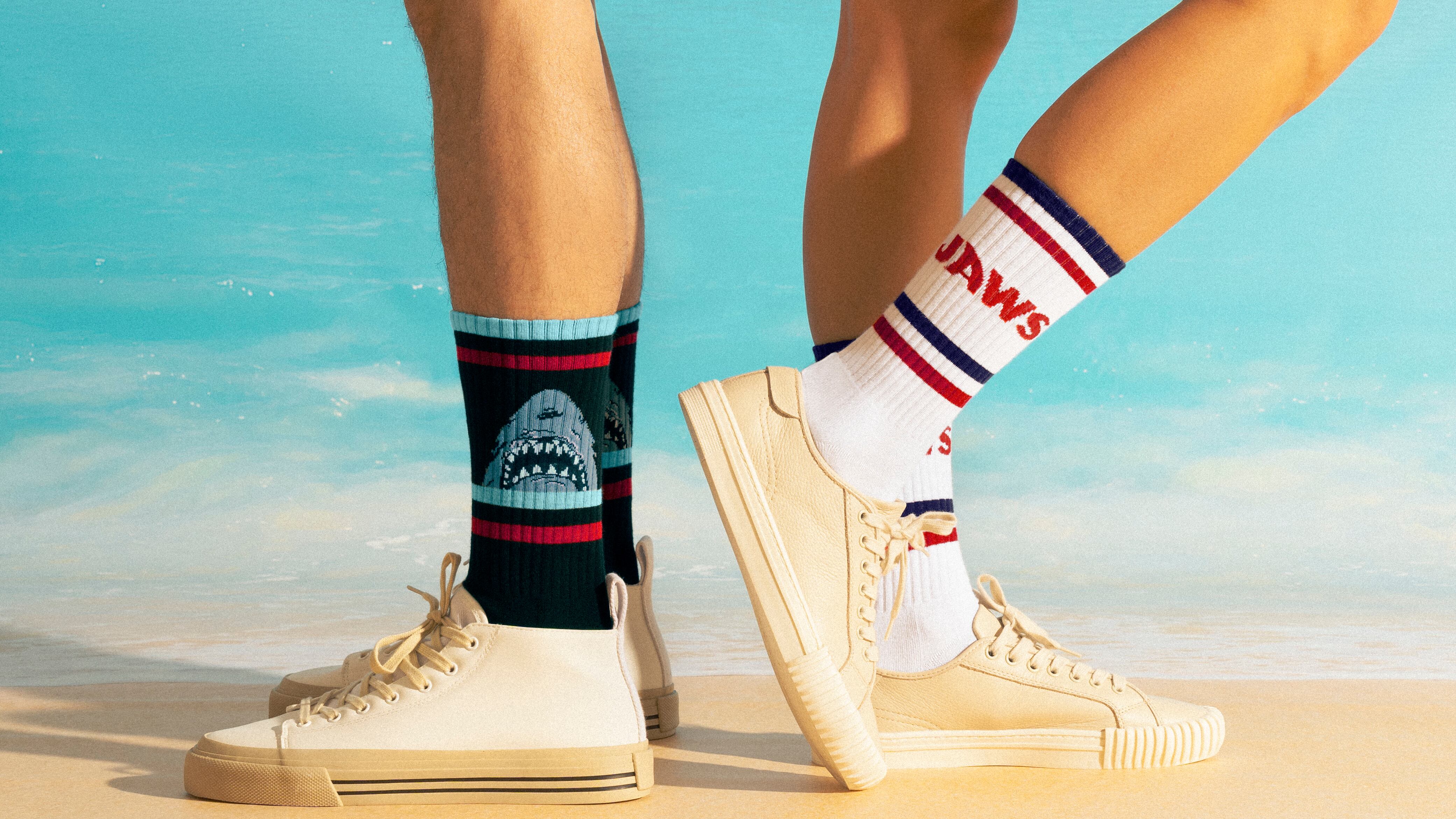 Acerca de estas nuevas colecciones, la de “Jaws” está compuesta por 6 diseños en los modelos: “Jaws Shark Attack Blue”, “Jaws Sharks Blue” y “Jaws Amity Island Light Blue”, en este último, por primera vez la marca introduce el diseño estilo cómic. De la misma manera, la línea cuenta con dos modelos atléticos en color blanco y negro. Con estos modelos, Jimmy Lion revive al mítico tiburón blanco “Bruce”, quien es el personaje principal de la película de Steven Spielberg.