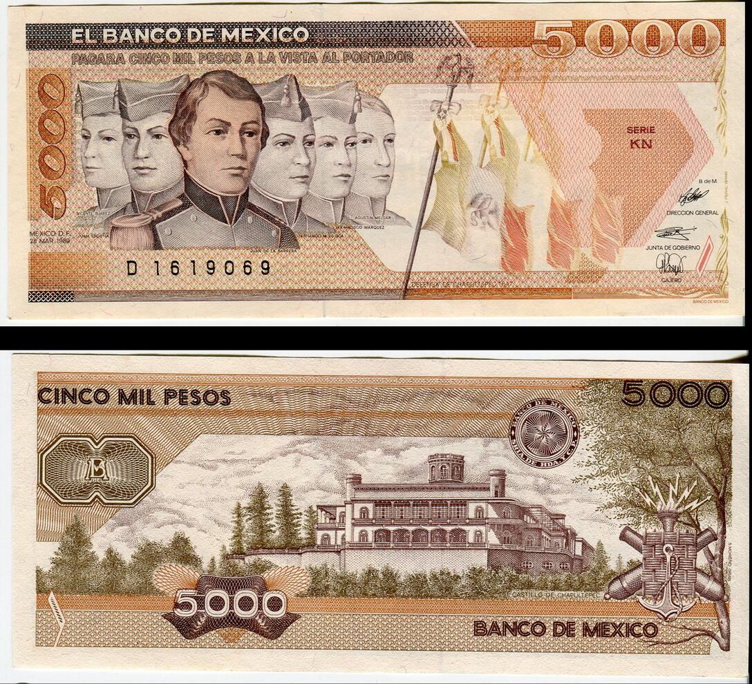 El Banco de México puso en circulación en los años ochenta el billete de 5 mil pesos con la imagen de los Niños Héroes y el Castillo de Chapultepec. Incluso, la mayor denominación se puso en circulación en 1991.
