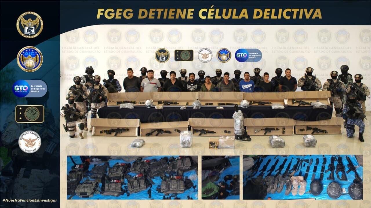 “A excepción de los que fueron ubicados al exterior del inmueble apostados como vigilantes, el resto de los detenidos fueron sorprendidos al interior con las armas de fuego empuñadas y portaban chalecos balísticos con las siglas de una organización criminal. El radio de acción de las armas oficiales y el despliegue táctico de los elementos les impidió maniobrar y con ello se evitó la confrontación. No hubo detonaciones de armas de fuego”, detalló la Fiscalía.