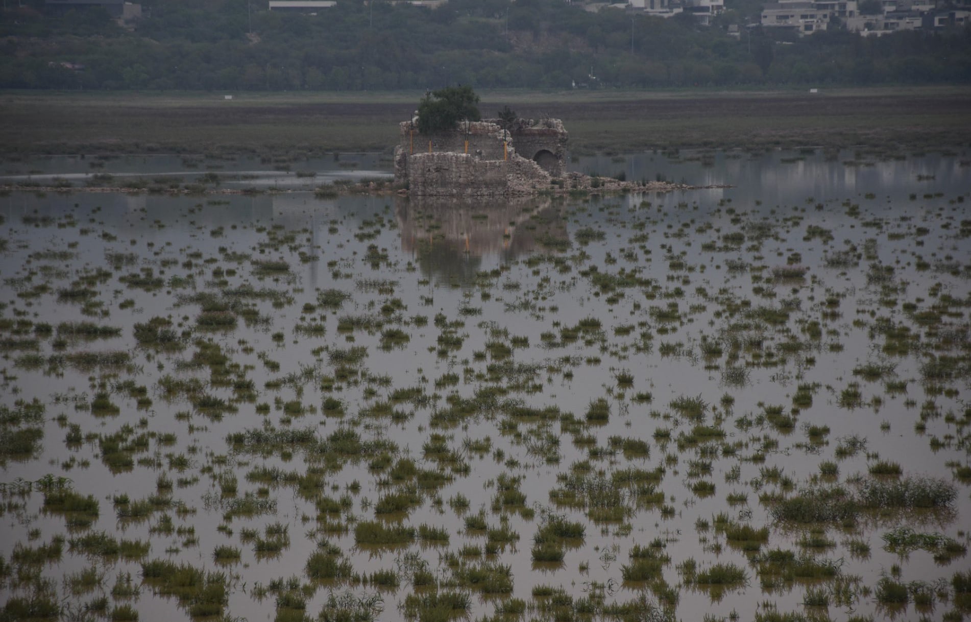 En el caso de la presa El Palote, ya logró llegar al 10% de su capacidad gracias a las lluvias recientes; el año pasado en estas mismas fechas se encontraba al 14.50%. Ahora el casco de ExHacienda que se encuentra al centro de la presa, y había quedado totalmente descubierto por la sequía, ya comenzó a inundarse.