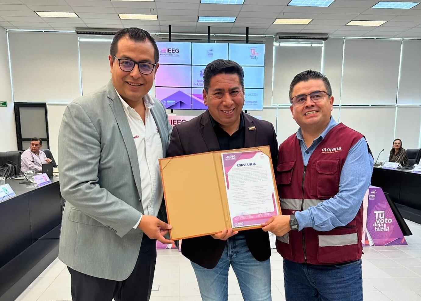 El proyecto aprobado por el IEEG, otorgó 5 diputaciones para Morena, las cuales serán ocupadas por David Martínez Mendizábal, quien será diputado local por segunda vez consecutiva, Plásida Calzada Velázquez, Maribel Aguilar González, Ernesto Millán Soberanes, quien entró dentro de la lista para cubrir el requerimiento de postular a una persona con discapacidad, aludiendo este a la debilidad visual que dijo padecer.