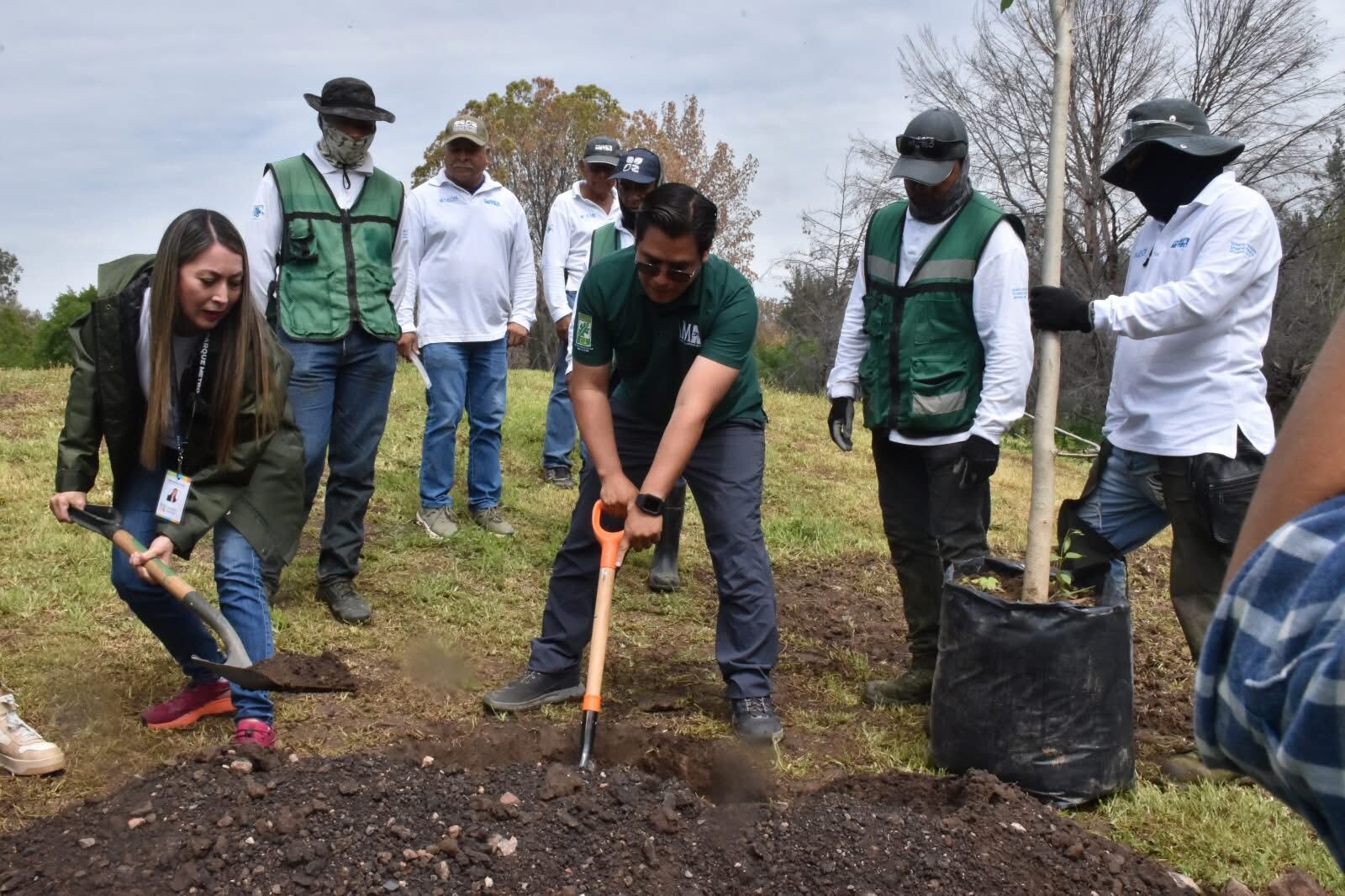 Durante la jornada de reforestación se plantaron 77 árboles nativos y adaptados al entorno, entre ellos olivo negro, nogal pecanero, tabachín, ébano, palo blanco, fresno y palo verde, especies seleccionadas por su resiliencia climática, diversidad y valor ecológico a largo plazo.