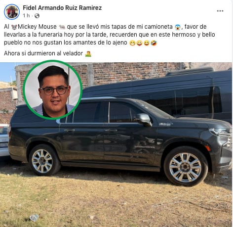 El alcalde de Juventino Rosas, Guanajuato, Fidel Armando Ruiz Ramírez, denunció a través de redes sociales el robo de los tapones (centros de rin) de su camioneta.