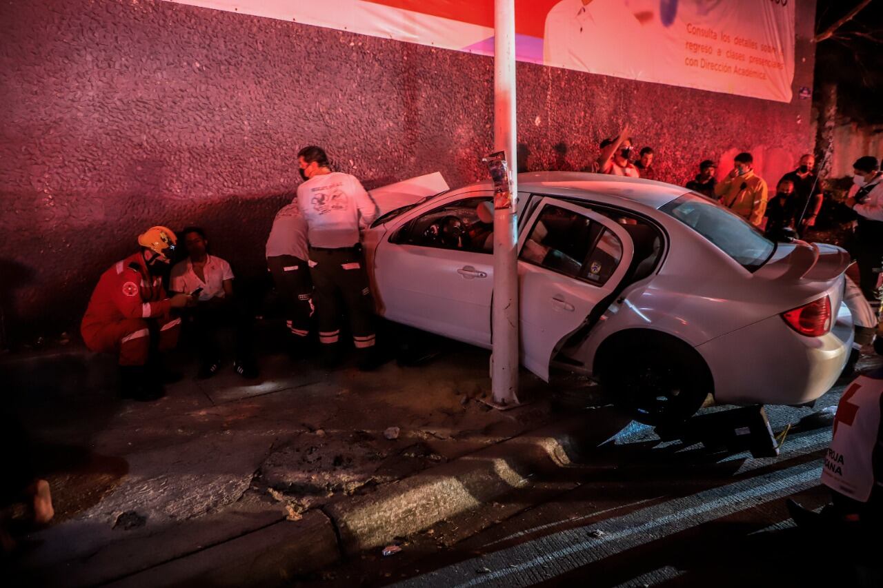 Los hechos ocurrieron al filo de las 4:38 horas de la madrugada, cuando sobre la avenida Washington transitaba un vehículo Pontiac deportivo de color blanco. Según narran testigos, al llegar a la glorieta de Héroes Ferrocarrileros, el conductor de esta unidad la tomó a mucha velocidad, derrapó y se terminó estrellando de frente contra el muro de piedras del plantel universitario UTEG que se encuentra en el punto.