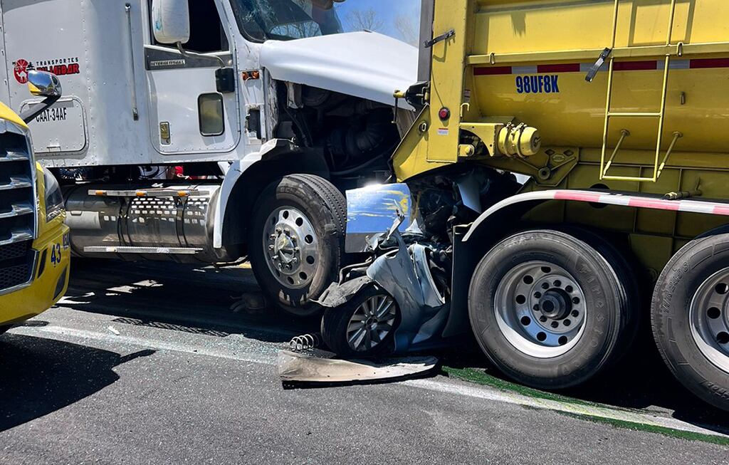 Un coche color plata, del que se desconocen más características, quedó prensado entre dos tráileres, uno de color blanco con caja y otro de color amarillo con góndola. En este compacto viajaba la persona que falleció. Tras este impacto, otros tres automotores también fueron alcanzados por el percance: una camioneta blanca de caja seca que chocó por alcance, un tráiler amarillo y un vehículo Jetta de color plata. Los otros dos lesionados viajaban en la camioneta de reparto y en el Jetta.