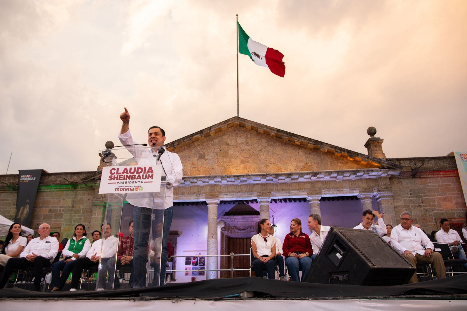 “A todos les digo que ha llegado el momento de demostrarle a estos estos sinvergüenzas de Movimiento Ciudadano que ostentan el poder, que el poder verdaderamente invencible está aquí, en el pueblo, y el próximo 2 de junio los vamos a sacar con la esperanza de un cambio con bienestar. A esos sinvergüenzas vamos a demostrarles, junto con la doctora Claudia Sheinbaum y Claudia Delgadillo, que Guadalajara no se rompe, que Guadalajara no se vende, y que Guadalajara no se raja. A este cambio ya nadie lo para. Vamos a votar el próximo 2 de junio”.