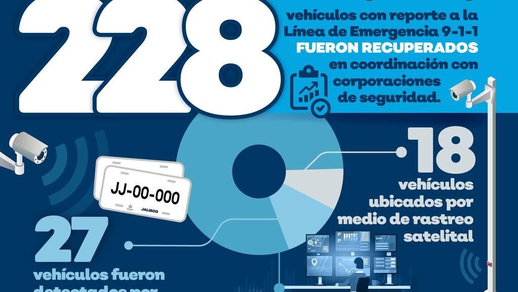 Gracias al funcionamiento de la infraestructura de videovigilancia de Escudo Urbano C5 Jalisco y la coordinación con corporaciones de seguridad de los tres niveles de gobierno, durante el mes de septiembre se recuperaron 228 vehículos con reporte de robo.