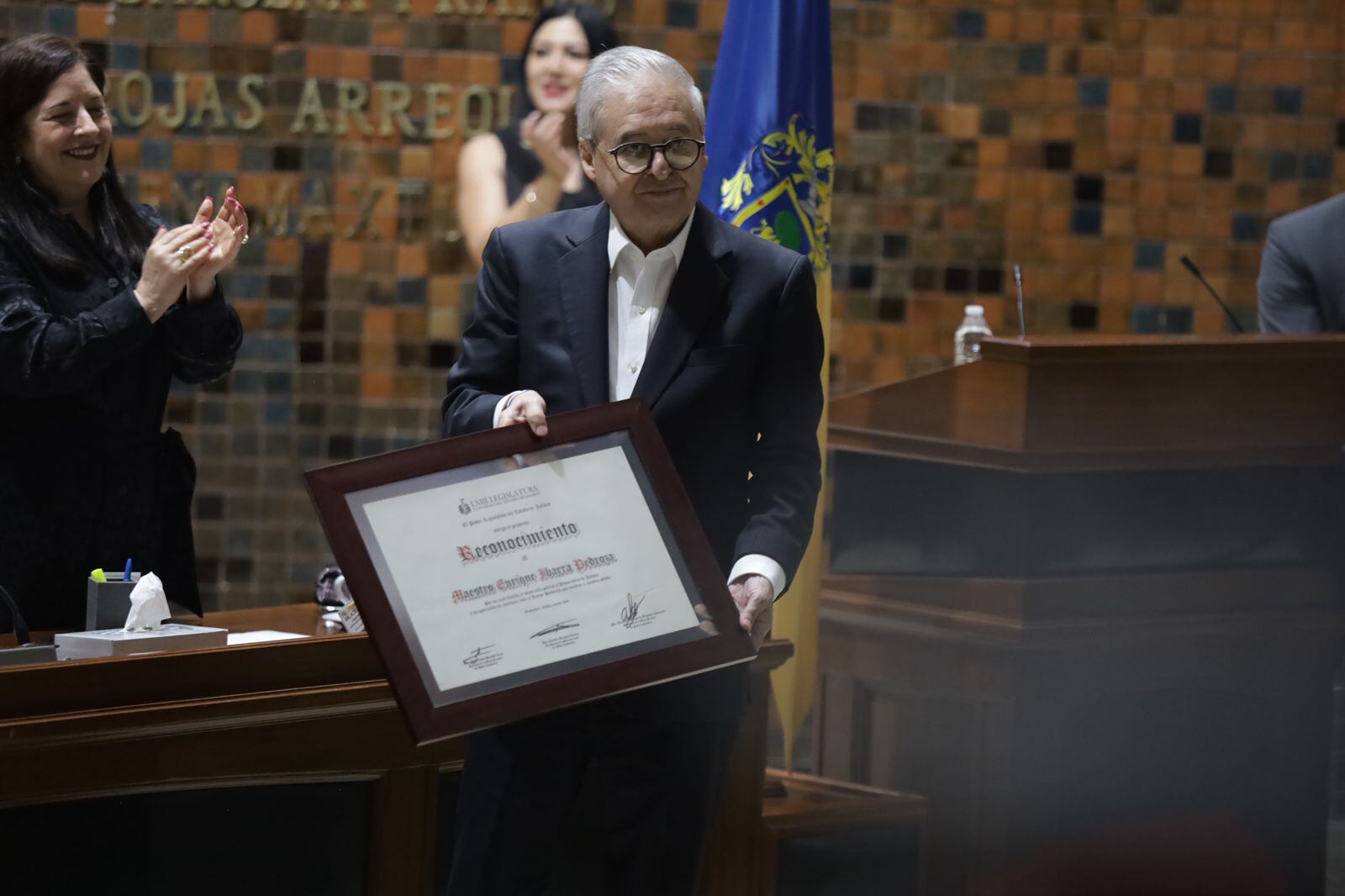 En sesión solemne en el Congreso del Estado de Jalisco fue entregado reconocimiento por su trayectoria al actual secretario General de Gobierno, Enrique Ibarra Pedroza, quien se ha desempaño en diferentes puestos políticos de forma local y federal.