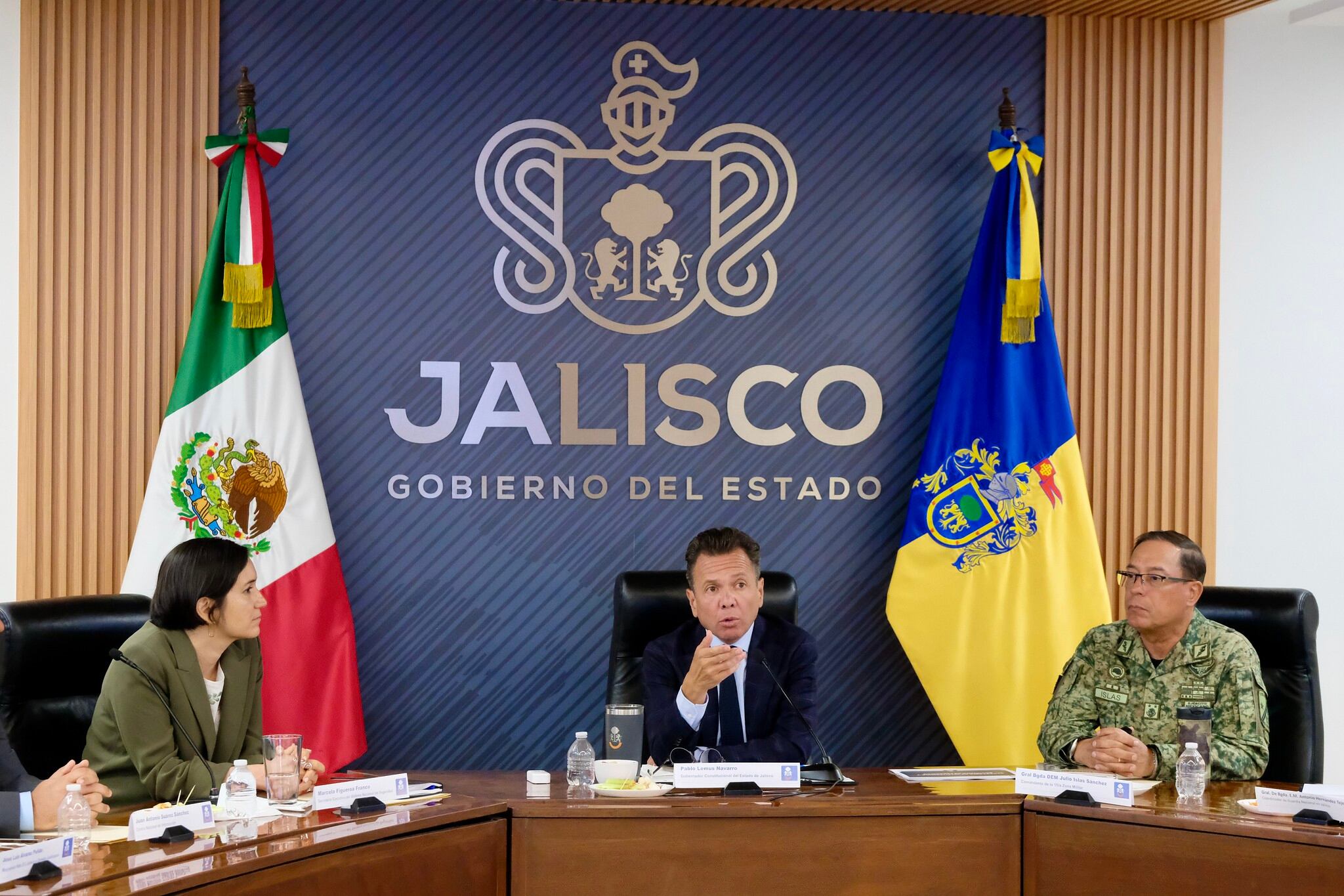 El gobernador de Jalisco, Pablo Lemus, compartió detalles sobre los temas que se abordaron en su reunión con Marcela Figueroa, secretaria ejecutiva del Sistema Nacional de Seguridad Pública, misma en la que además de presentarse el Proyecto C5 Jalisco (antes “Escudo Urbano”) también asistieron las fuerzas armadas, la Guardia Nacional (GN) y distintas instituciones de seguridad a nivel federal y estatal.