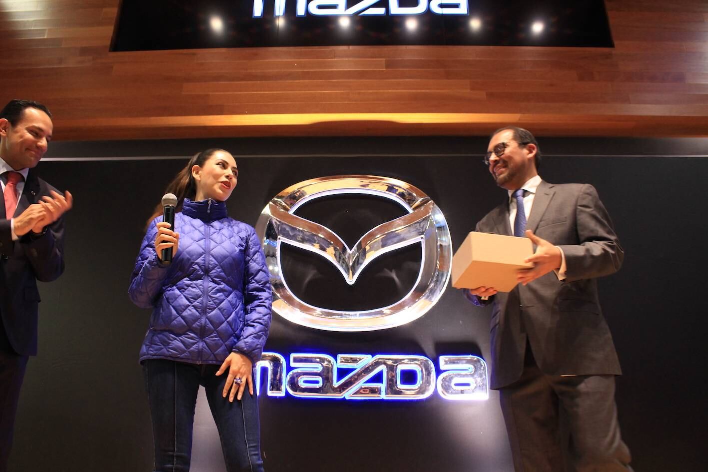 Ella inicialmente realizó el proceso de compra normal del auto en esa misma agencia. Sin embargo, Miguel Barbeyto, presidente de Mazda de Mexico, dio su nombre al final de las palabras de agradecimiento durante el cocktail de bienvenida.