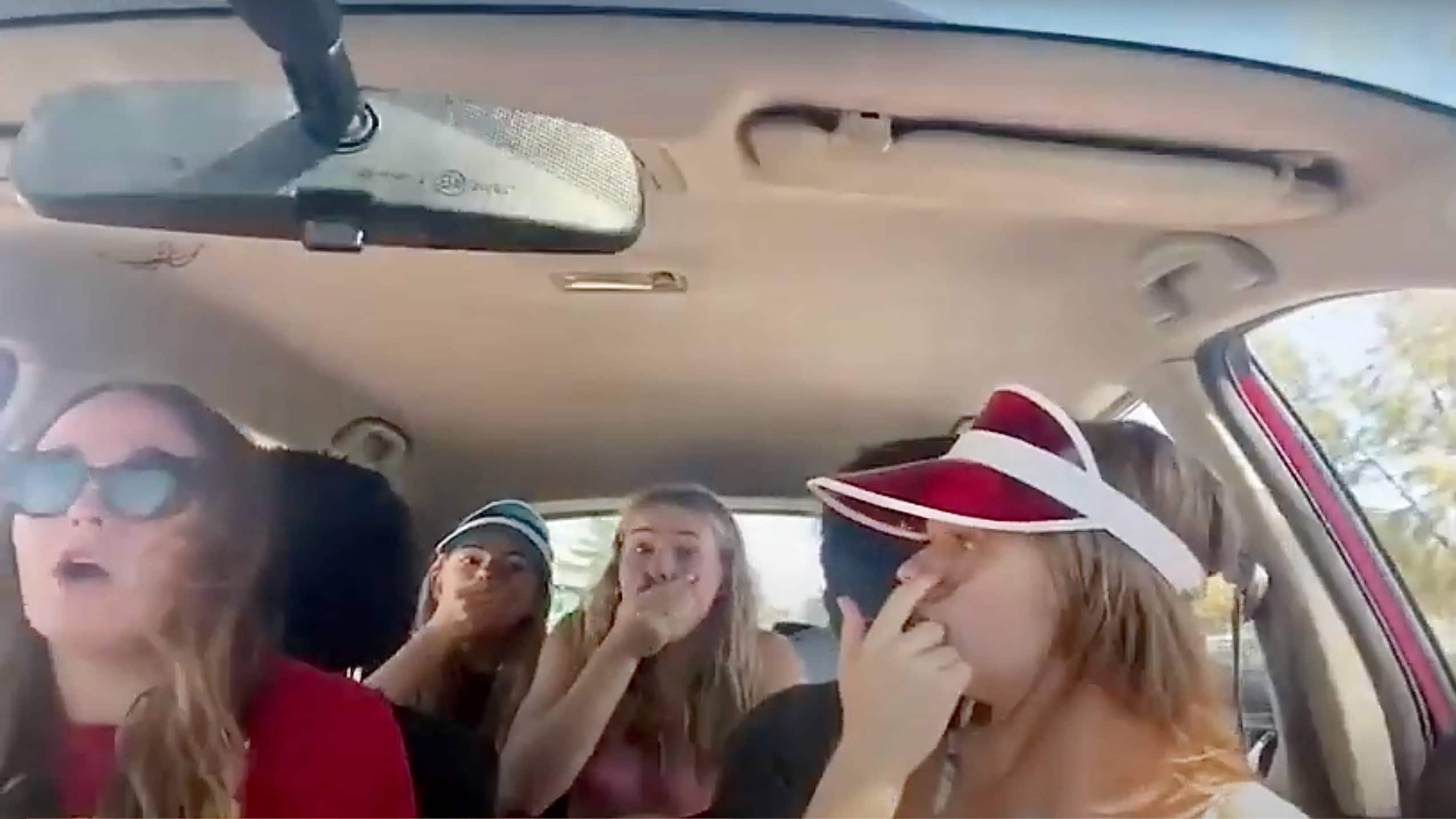 Uno de los más recientes es el de estos jóvenes que se encontraban grabando un video en el auto hasta que, una de las chicas en el asiento trasero, ve la enorme araña en el techo.
