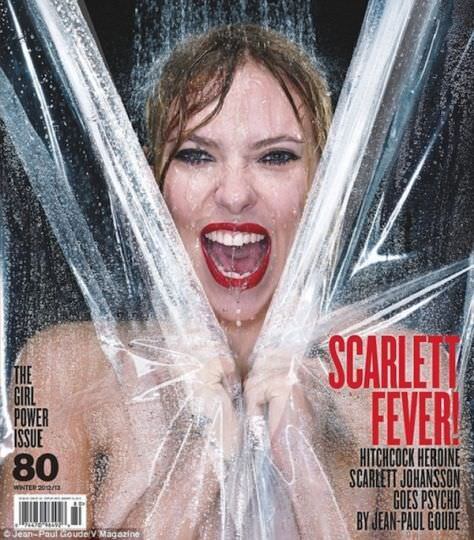 La actriz estadounidense Scarlett Johansson, posó para la portada de V Magazine, haciendo alusión a una de las escenas más famosas del cine. Se trata de Psicosis del afamado Albert Hitchcok.