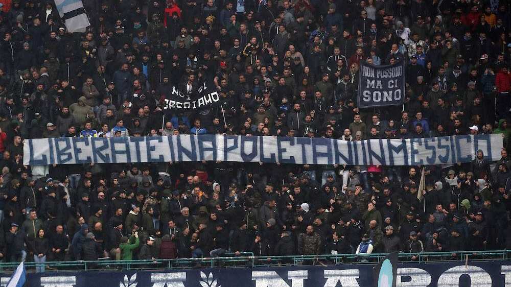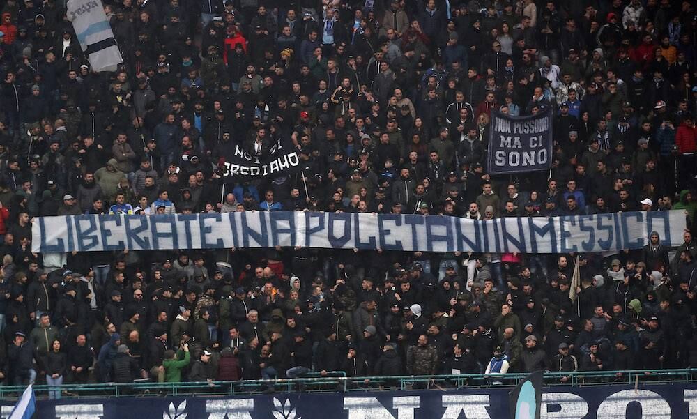 Los aficionados del Napoli aprovecharon el encuentro entre su equipo y el SPAL para reclamar que liberen a tres ciudadanos napolitanos que están desaparecidos desde hace 20 días en México.