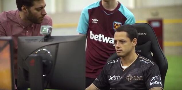 Javier Hernández demostró que también es un habilidoso videojugador al superar fácilmente a su compañero en el West Ham, Michail Antonio.