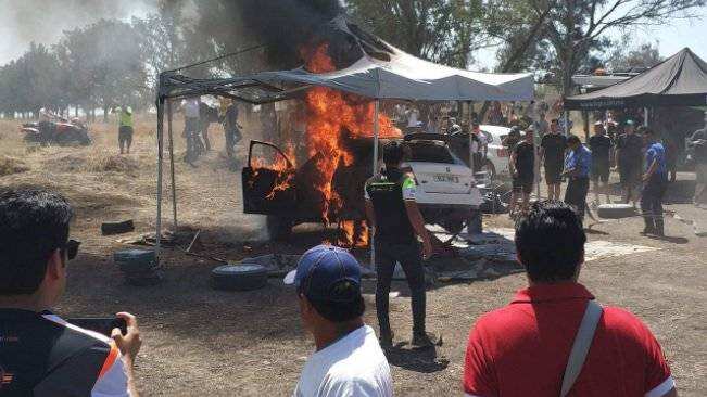 ¡Increíble! Hace unos momentos, el Skoda Fabia R5 del piloto mexicano Benito Guerra se incendió a unos días del rally de Guanajuato. pic.twitter.com/i9IVUCoCEn
