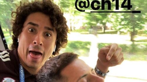 Fabián de la Mora compartió en Instagram Stories una foto en la que aparece Javier Hernández durmiendo mientras Ochoa hace un gesto a las espaldas de su compañero. Marco acompañó la imagen con el mensaje “¿se estará imaginando cosas chingonas o no @yosoy8a?”.