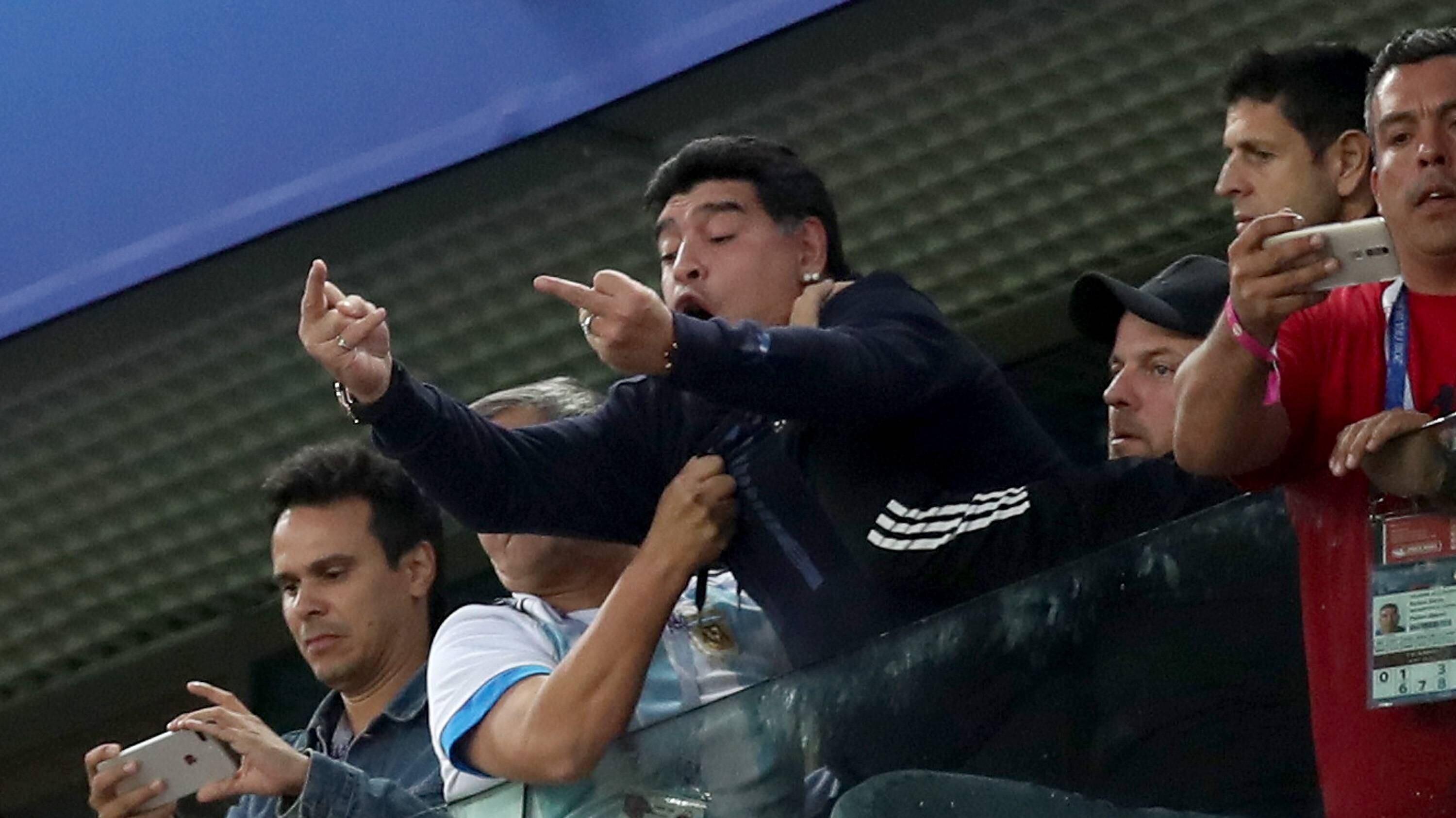 Luis Armando Maradona se ha convertido tendencia en redes sociales tras todas sus reacciones durante el vibrante encuentro entre Nigeria y Argentina en el Estadio San Petersburgo; sin embargo, tuvo una reprobable acción frente a los aficionados de las Súper Águilas al ‘pintarles’ el dedo tras el gol de Marcos Rojo, además de llamarles ‘putos’.