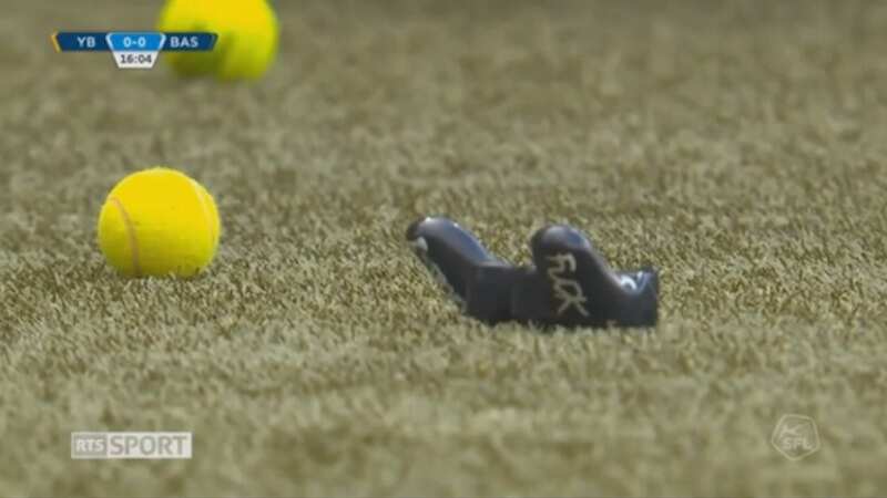 jets de balles de tennis😶 du kop des deux clubs sur le terrain lors du match de football Young-Boys-FC Bâle pour protester contre les eSport