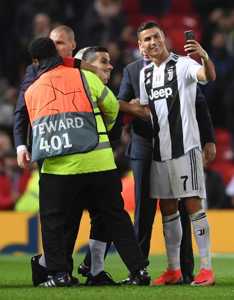 Cristiano Ronaldo es muy querido en el Manchester United por los seis años que defendió los colores del club inglés. El portugués fue vitoreado en el Estadio Old Trafford y al finalizar el encuentro con la Juventus un aficionado se metió al campo para saludarlo y tomarse una foto con él.
