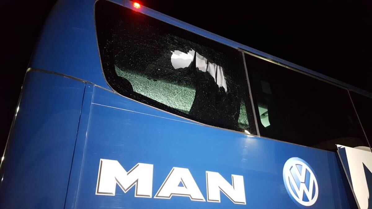 Apedrearon el camión de @Rayados pic.twitter.com/jGmlQMJmBO