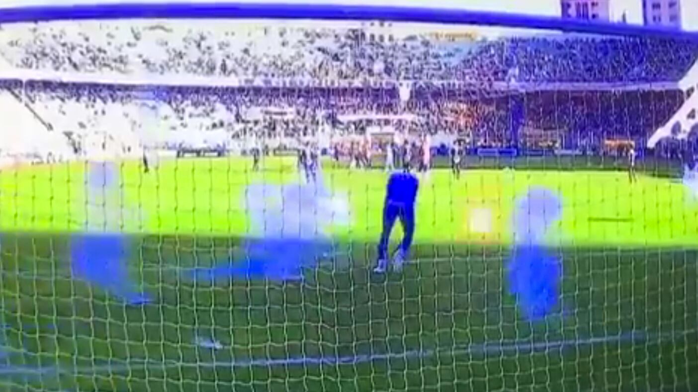 Las imágenes reflejaron que desde la tribuna de los hinchas aviadores, apostados en la curva norte del estadio Hernando Siles, arrojaron varios explosivos cerca de la portería de Vaca que provocaron al menos una decena de detonaciones.