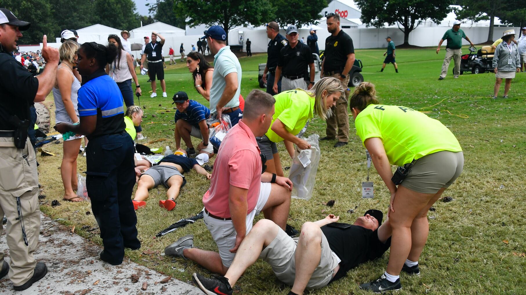 Varias ambulancias acudieron al club privado, que se ubica unos cinco kilómetros (tres millas) del centro de Atlanta. En el campo, 30 golfistas competían por la Copa FedEx y por un premio de 15 millones de dólares.