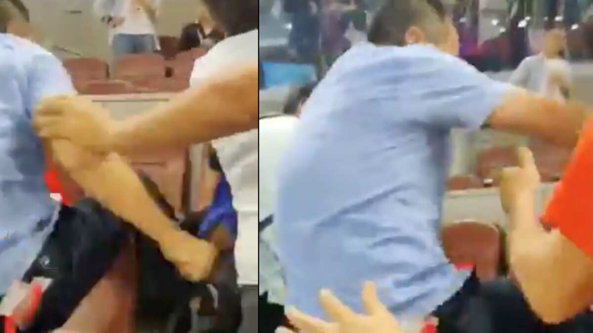 The guy in blue shirt is Zhang Shuai's player box's guest, and he was assauting and beating one of Angie's Chinese fan after the match, blaming the Angie's Chinese fans cheering for Angie in Zhang Shuai's hometown, I think that's why Zhang shuai got so many haters pic.twitter.com/aJ7qWMVf3u