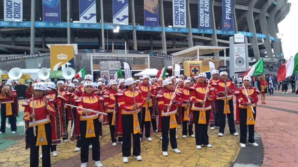 Vaya sorpresa se llevaron los asistentes al Estadio Azteca, pues la banda infantil Sangre Azteca se presentó en la explanada principal de coloso de Santa Úrsula para amenizar el previo del partido Cruz Azul vs. América.