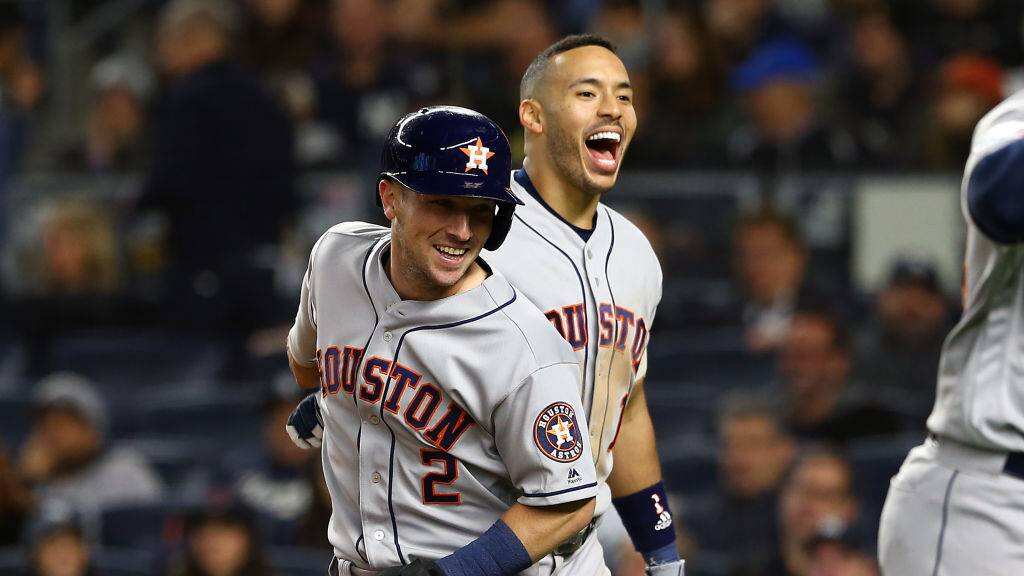 Carlos Correa y George Springer despacharon jonrones de tres carreras y los Astros vencieron el jueves 8-3 a Nueva York