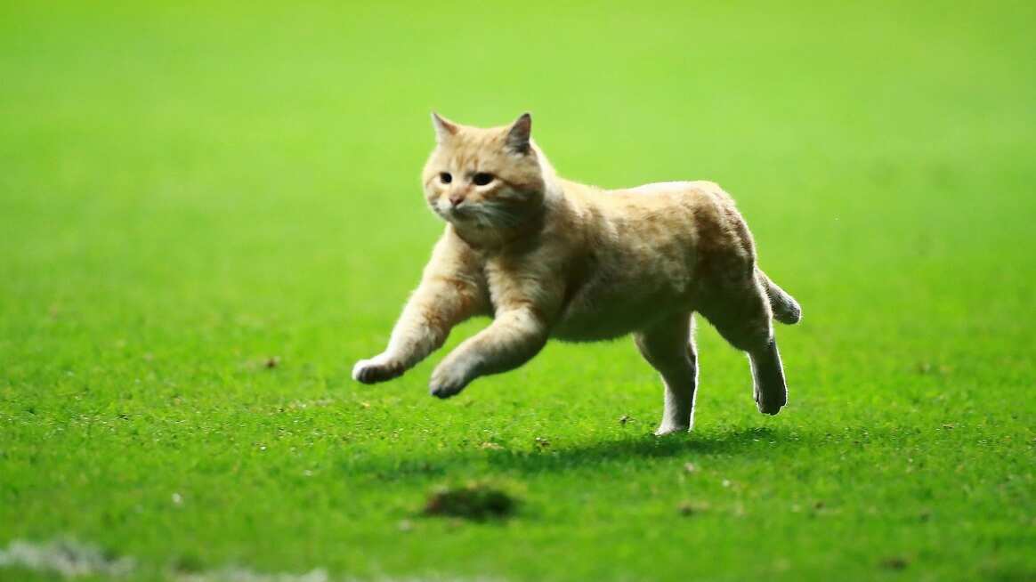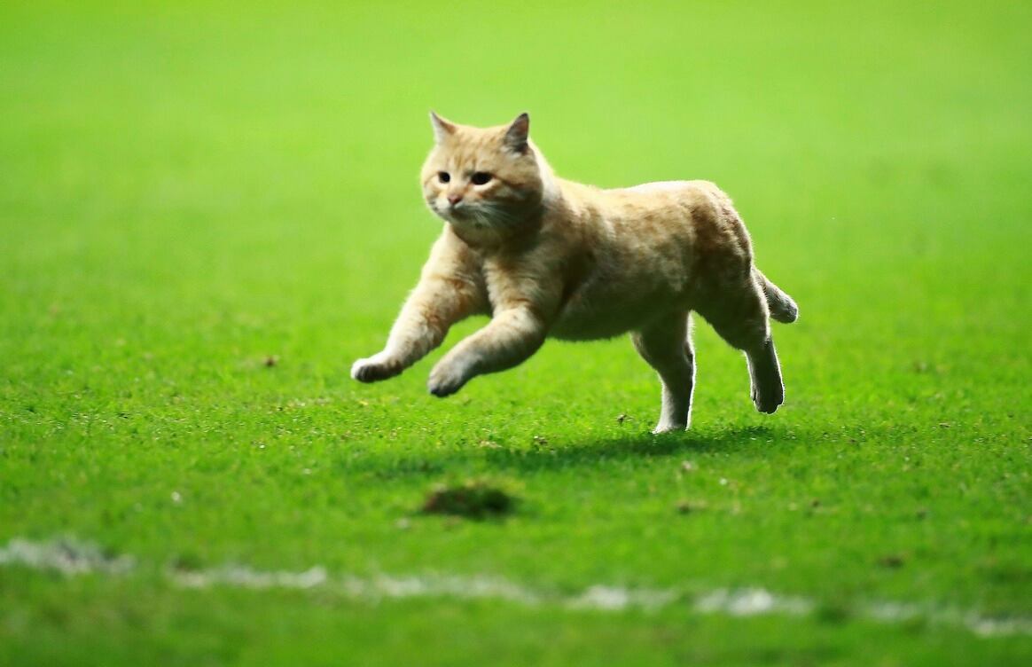 El felino hizo acto de presencial al minuto 53 y corrió a lo largo de la cancha. Cuando pasó cerca de las bancas, Guillermo Ochoa trató de atraerlo pero lo ignoró y siguió su camino hasta que saltó uno de los anuncios que daban a una de las gradas.