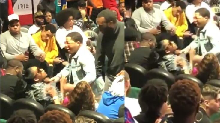 Según indicó el portal TMZ, la filmación corresponde a un partido benéfico de baloncesto en Miami. La mujer, Andretta Smothers, estaba ubicada en primera fila y el video comenzó cuando el púgil de 25 años se dirigió violentamente hacia ella.