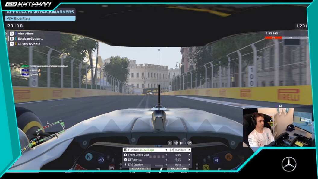 El mexicano Esteban Gutiérrez obtuvo su tercer podio consecutivo en el campeonato virtual de la Fórmula 1, al finalizar tercero en el Gran Premio de Azerbaiyán, en el que el británico George Russell ganó, seguido del tailandés Alexander Albon.