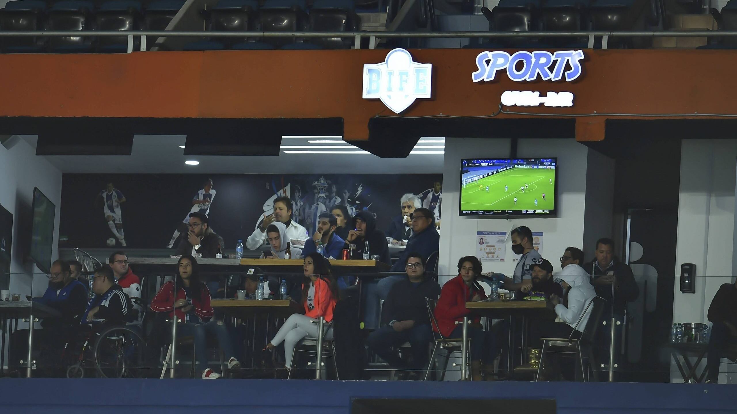 El Bife Sports Grill and Bar es un restaurante que se encuentra dentro del Estadio Hidalgo, durante la pandemia del Covid-19 ha brindado servicios, por lo que mucha gente aprovechó la oportunidad para disfrutar del partido, ya que una parte del lugar tiene vista a la cancha.