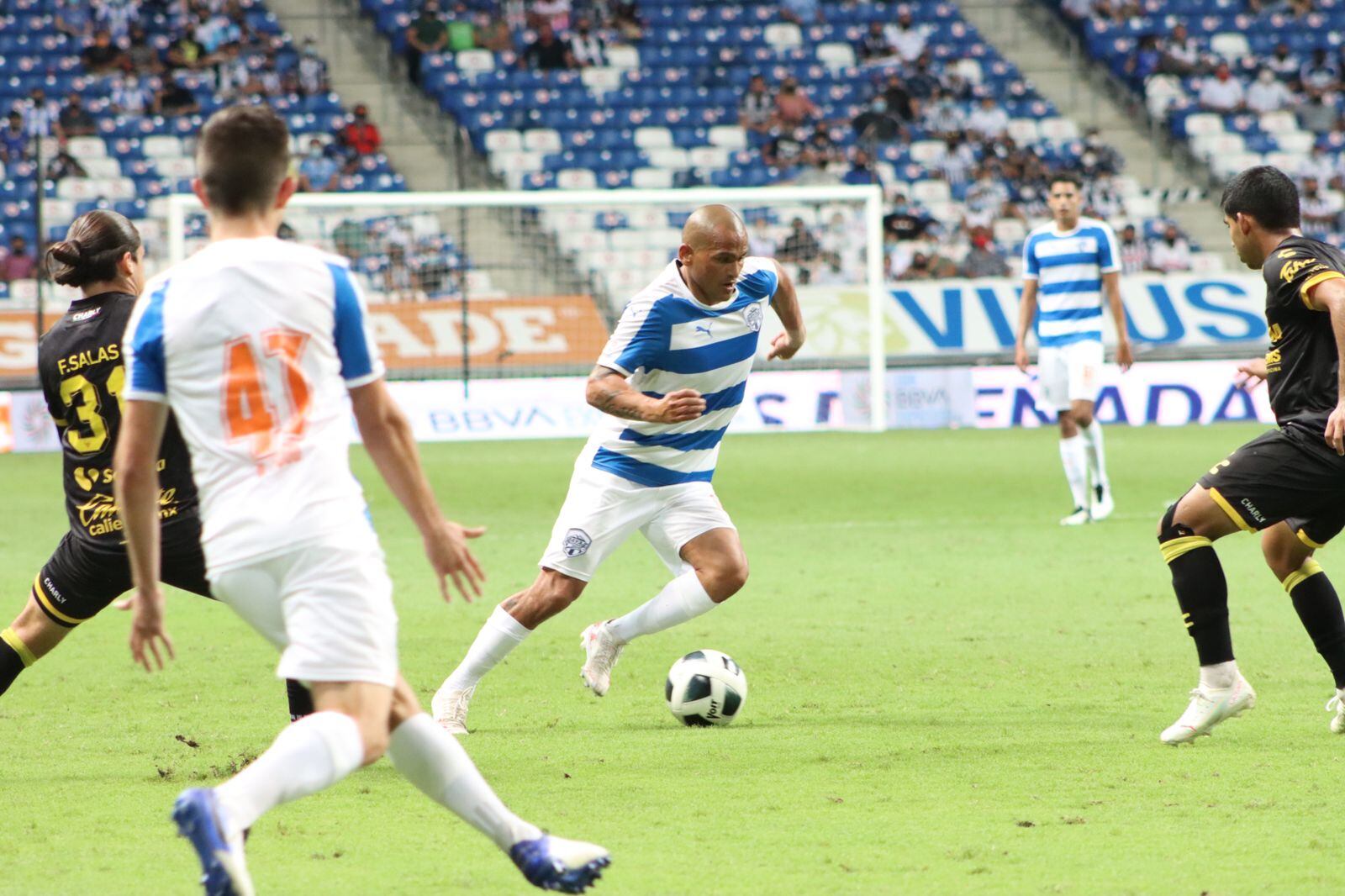 El Estadio BBVA estuvo a su máxima capacidad, el 30 por ciento, permitido por la Secretaría de Salud, para ver el debut del chileno.